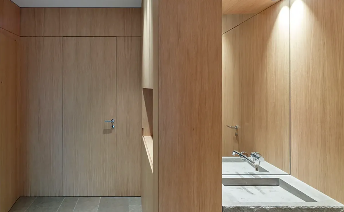 O edifício constitui um rooftop com 600 m2 e as frações habitacionais possuem amplos vãos envidraçados, paredes e pavimentos em pedra natural que se prolongam para o exterior, móveis embutidos em madeira de carvalho americano e espaços ajardinados com vegetação cuidada que resultam de uma criteriosa seleção paisagística.